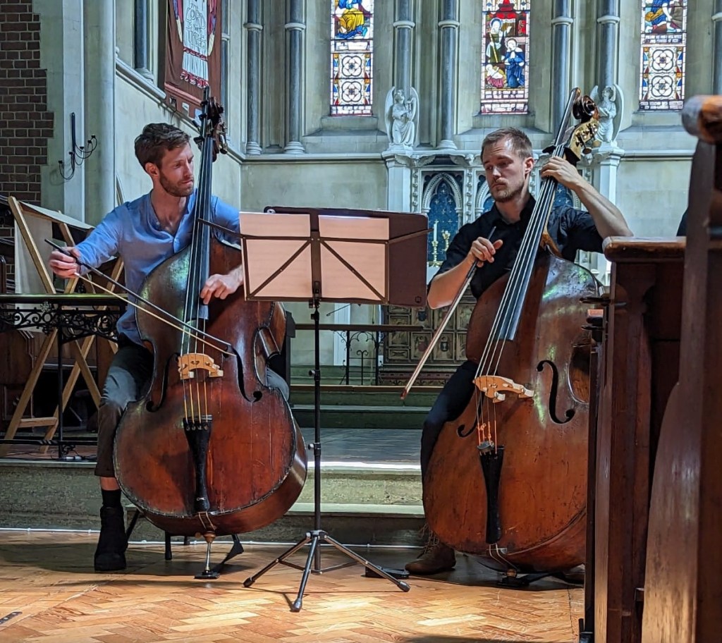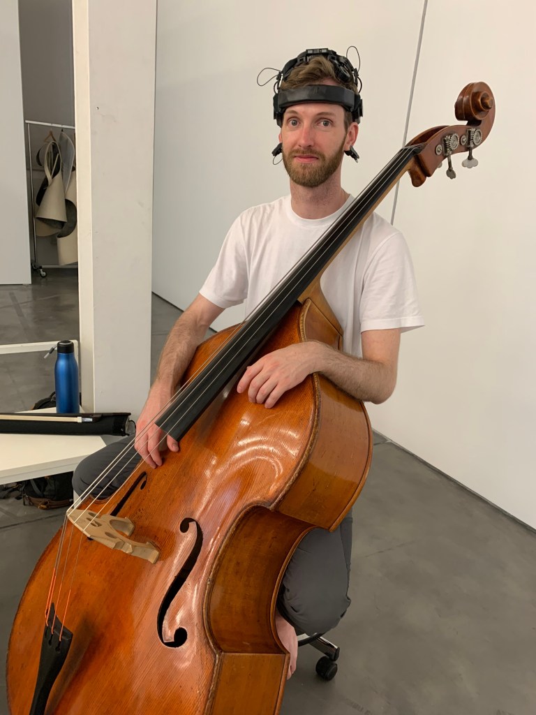 MeNocturne ‘Old Nectar’ video recording session, January 2022Composer David Earl points out where Double Bassist Alexander Verster keeps missing his entry, January 1932Photo credit: @edmasonphotoMeArchitects, Live at Abbey Road, Photo credit: @edmasonphotoHaving an EEG while playing to see if there’s anything going on up thereRosin chatWith bass duo partner Martin LBass duo recital, of all things